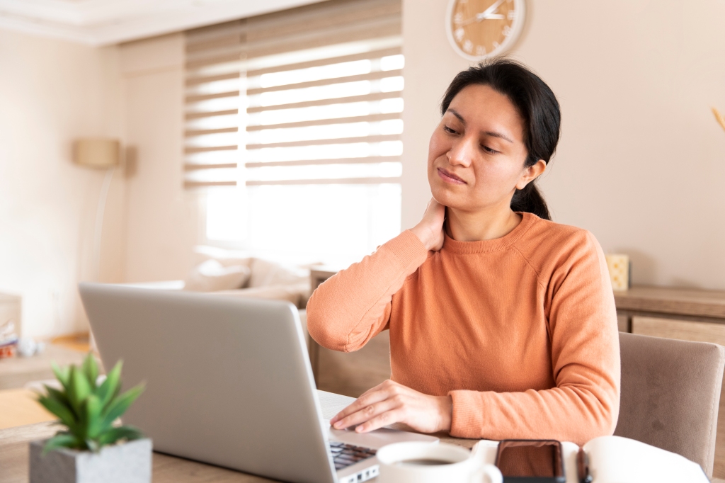 “Avoid prolonged positions such as cell phone posture or lying flat with your head elevated can prevent neck pain, as these positions put undue stress on the muscles and joints,” Tenbrink says.