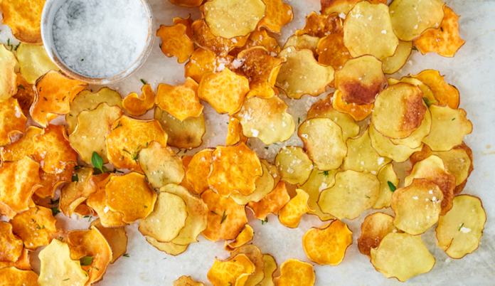 Yes, potato chips made with white potatoes are delicious—and really good for your gut. But they certainly aren’t the only healthy spud on the block. So, let’s quickly turn our attention to the bevy of sweet potato benefits that make it the perfect contender for turning into chips: They’re packed with vitamin A, full of fiber, potassium, and can help promote skin health. Oh, and taste darn good. Sweet potato chips, anyone? Thankfully, Jenny Bolle, the creator behind @eatmoreplants.no, was one step ahead of us.