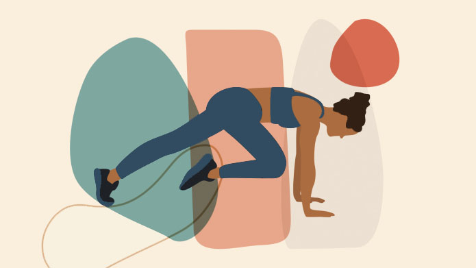 Exercise: Sit on the floor with your hands underneath your shoulders, knees bent and feet flat on the ground. Keeping your arms straight, use your legs to push your hips up toward the ceiling until your torso is flat like a tabletop. Lift your right arm straight up toward the ceiling, rotating your upper body so that it is supported by your left arm, keeping your hips lifted. Lower your right arm to the start position, and just slightly lower your hips, but don’t let them return to the floor. Repeat with your left arm. Repeat 10 to 15 times for each side. As you get stronger, hold your arm and hips up for two seconds before slightly lowering. You can also lay a weighted ankle strap across your hips to increase the weight your legs must lift.